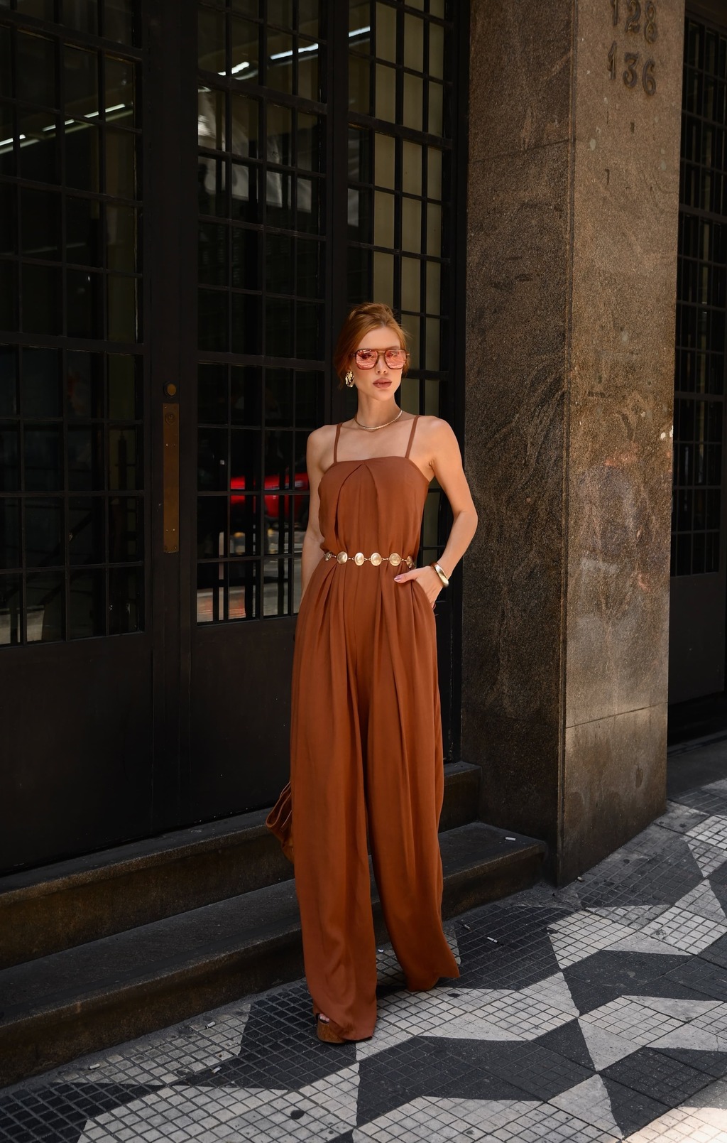 O Macacão Lorena na cor marrom combina praticidade e elegância em uma única peça. Confeccionado em tecido de toque suave e caimento leve, possui modelagem que valoriza a silhueta sem abrir mão do conforto. Seu decote discreto e alças ajustáveis garantem um caimento perfeito, enquanto a cintura marcada com cinto interno cria um efeito estruturado. O design com pernas levemente afuniladas e bolsos frontais adiciona funcionalidade e estilo. Versátil, é ideal tanto para o dia a dia quanto para ocasiões mais sofisticadas, permitindo diversas combinações de acessórios e calçados.